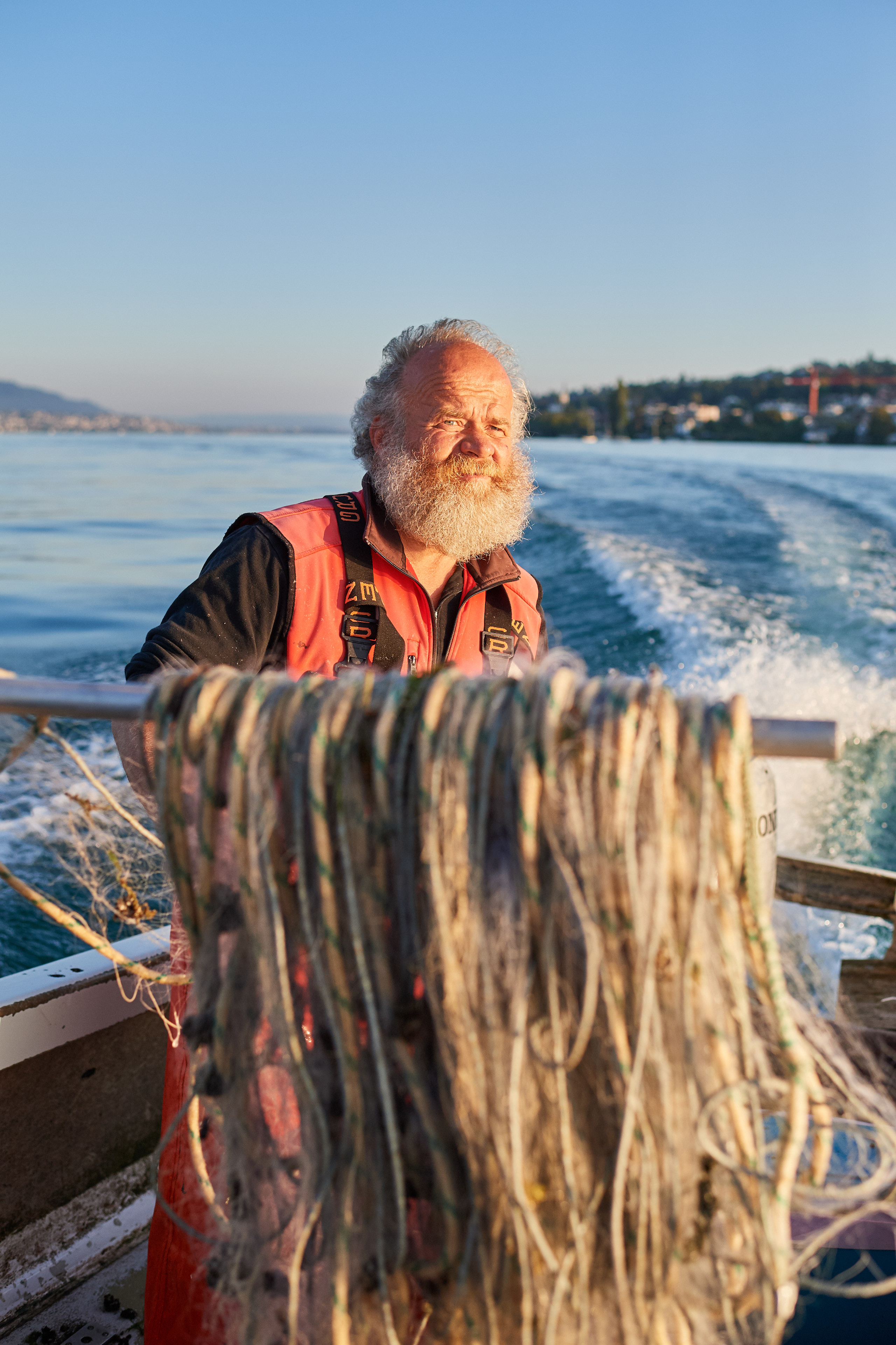Peter Grieser ist leidenschaftlicher Berufsfischer und führt die Fischerei Grieser am Zürichsee mit viel Herzblut und jahrzehntelanger Erfahrung. Bei Wind und Wetter ist er frühmorgens auf dem See unterwegs, um frischen Fisch in höchster Qualität zu fangen.